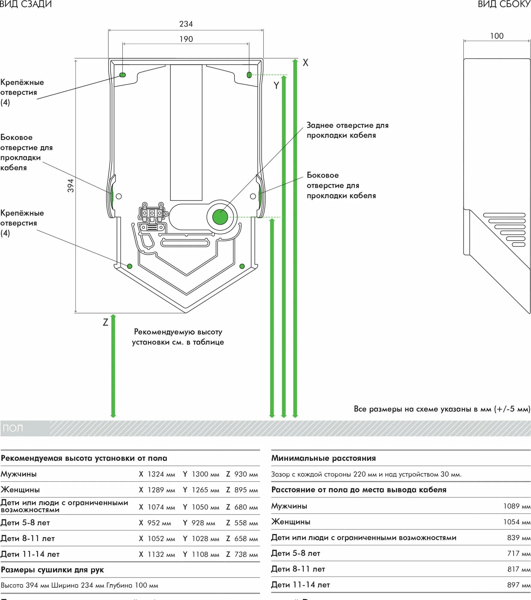 Мин. время сушки рук - 8 c